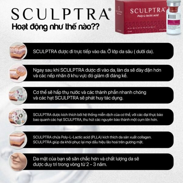 Sculptra kích hoạt sản xuất collagen bằng cách triển khai các hoạt chất thiết yếu.